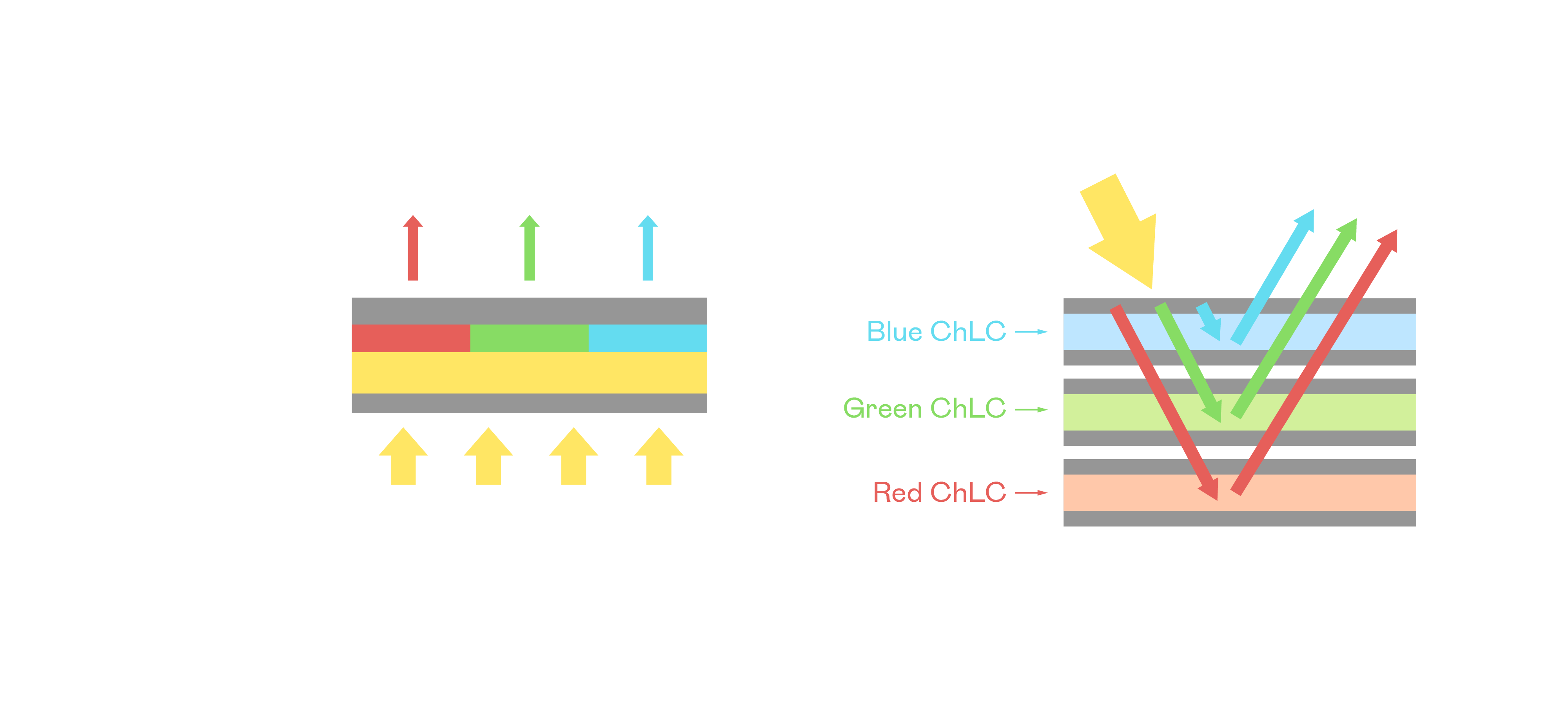华体汇官网登录入口胆固醇液晶显示器是由红、绿、蓝三层胆固醇液晶面板堆叠而成,并采用无彩色滤光片设计,减少环境光在反射过程中的损耗。